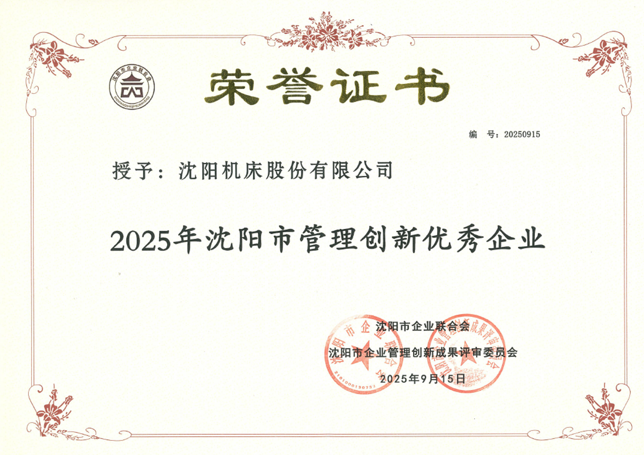 近日,通用技術沈陽機床獲評“2025年沈陽市管理創(chuàng)新優(yōu)秀企業(yè)”。